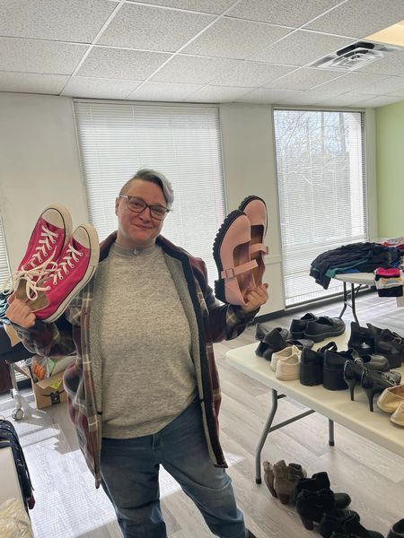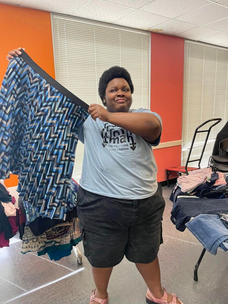 We held the second annual all-community clothing swap on February 18th. It was wild, with so many donations and so many shoppers. We had 54 volunteers and shoppers. We donated three carloads of extras to Transparent Closet out in Katy. Shout out to Nikki, Meghan, Nexus, George, and Myles for making this happen. Sadly, nobody took the big ass rectangle jumpsuit.