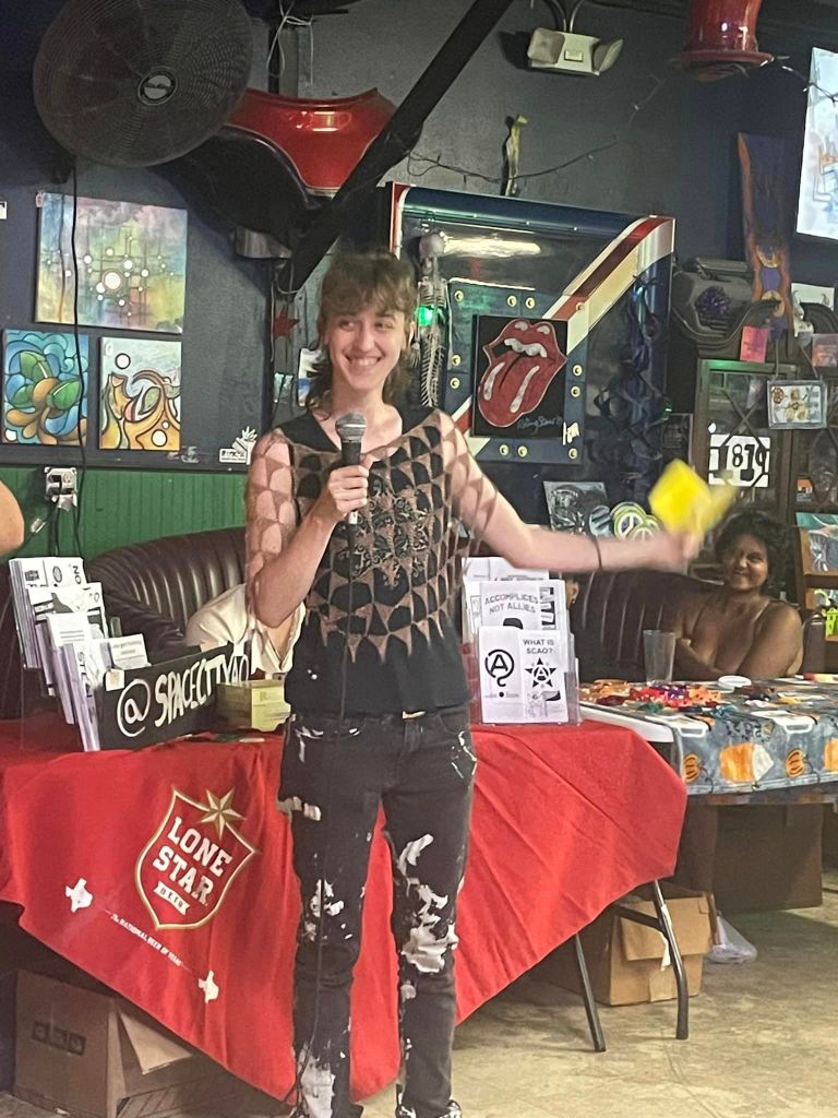 George and Ben represented TMAH at the 3rd annual Holy of Holies Art Show and Market on June 16, 2023. The event was held at Eighteen Ten Ojemon here in Houston. Founded by TMAH members Jet and Mo, this event features vendors, artists, and performances from transgender individuals.