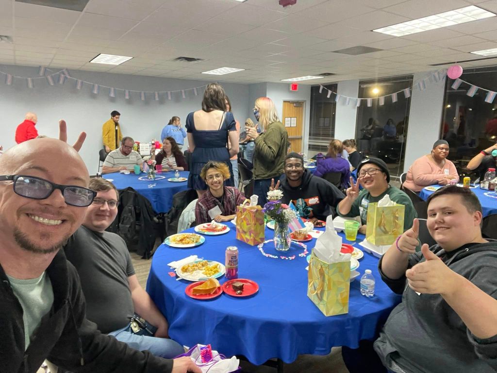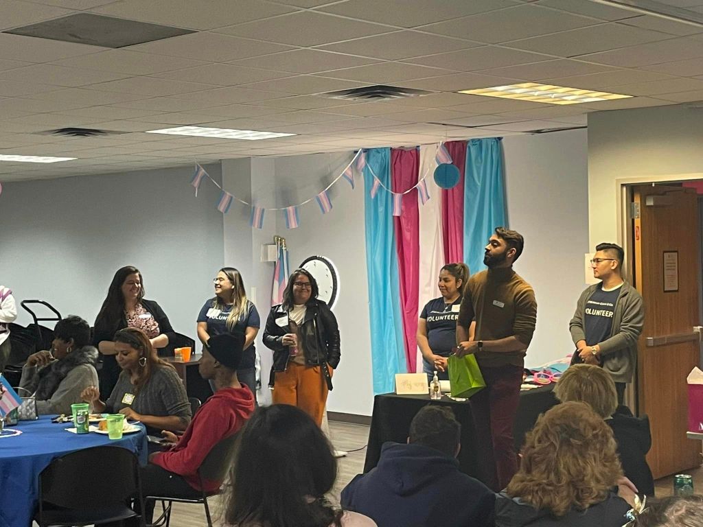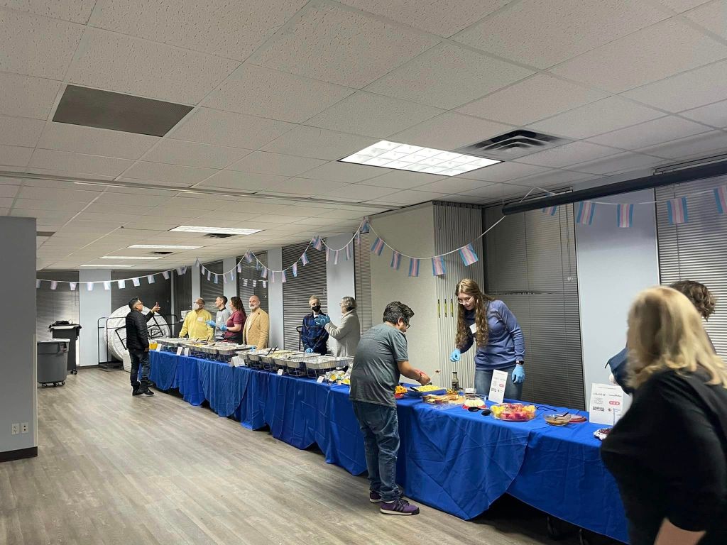 T-Giving is an annual Thanksgiving potluck dinner for the transgender community and our friends, families, and allies. It is held on the Tuesday before Thanksgiving. The potluck dates back to the late 1990s. It was started by Brenda Thomas, a fierce advocate for transgender rights. Brenda’s favorite holiday was Thanksgiving, and she wanted transgender individuals who had been rejected by their families to have a warm, welcoming space to celebrate. When the TG Center closed in 2014, George Zemanek was determined to keep it going. In 2016 he got together with Kennedy Loftin at the Montrose Center and they, along with Don’L, Nova, Atlantis, Maleah, and a whole host of staff and volunteers helped the dinner grow into what it is today. The pandemic didn’t slow us down. In 2020 and 2021, we held a drive through dinner with entertainment. This year we were so happy to be together in person again.