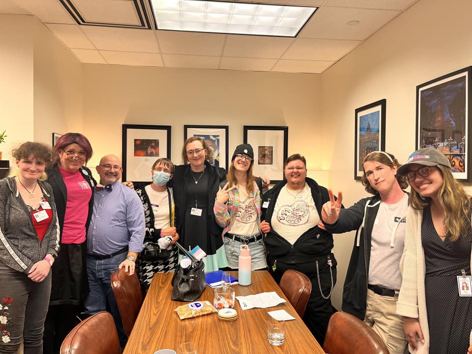“On March 20th, I traveled to Austin with Equality Texas to fight for trans rights at the capitol. I represented TMAH and rallied on the capitol steps with my wife as multiple speakers vocalized the importance of trans and LGBTQIA+ rights. I led my group in speaking to state senators and representatives and we focused primarily on the importance of protecting healthcare for trans youth and passing anti-discrimination laws for things such as places of employment. It was powerful to be surrounded by so many trans folks and allies and have our voices be heard by both those wanting to protect us and those who would want to harm us. It wad a truly rewarding experience like no other I have ever had. We all worked together to make a difference, but the work doesn’t end here. Let’s all band together and keep fighting!”